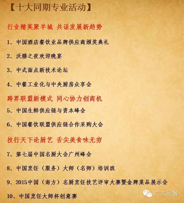 中国(广州)酒店餐饮业供应商博览会,敏锐适应行业变化,以专业展览与专业活动形式,全面展现中国餐饮业新常态、新模式、新食材,搭建中国餐饮业年度行业交流平台。