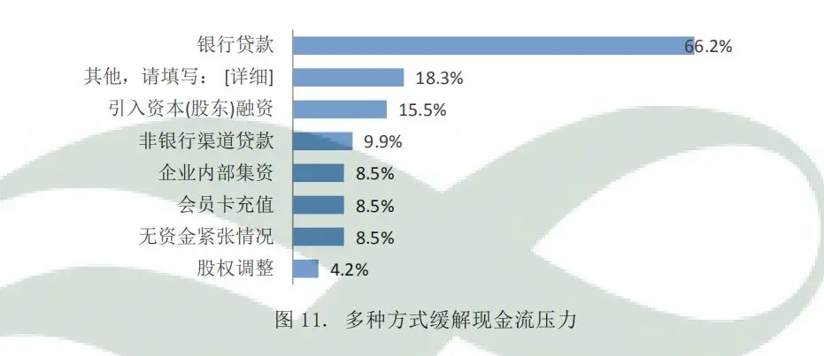 当然,也有8.5%的受访企业表示完全没有资金紧张的情况。据红餐网(ID:hongcan18)了解,这部分企业大部分都是 2019 年销售额10亿以上的大企业。由于体量大,很多企业早就吸引了一堆金融机构排着队等着聊放贷事宜。