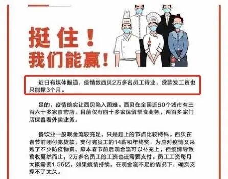 “这次疫情其实‘两头的还好办,中间的最难受’,规模大的容易引起关注,小店损失也小,而且大不了关掉。”隋政军认为。根据中国饭店协会近期开展的调研,疫情期间餐饮企业营业额整体同比下降超九成,流动资金能够撑到3个月以上的餐企寥寥无几,仅占比9%;现金流能够支撑1~2个月的餐企占比31%,27%的餐企表示已经无法继续支撑。隋政军预计,“真正的倒闭潮应该在3月底,大多数企业是负债经营的,不过现在还没到大家把子弹拼完的时候。大概就是到4月份的时候,疫情影响已经3个月。”不管如何,今年的餐饮只能是谨慎乐观,悲观行事,但一定要积极面对,活下去最重要!