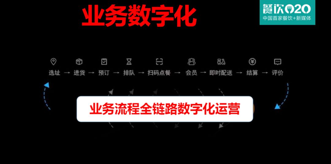 从选址、供应链,到预订、排队、叫号、扫码点单、即时配送、支付、评价等环节。这一整套流程,会员、外卖、商城、供应链等全链路实现数字化。