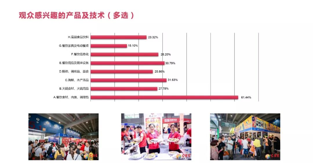 2020年8月14-16日,第十一届中国(广州)酒店餐饮业博览会(简称:第十一届CRE中国餐博会)圆满落下帷幕。本届展会汇聚500余家知名品牌供应/服务商,优选上千款餐饮新食材、新设备、新技术亮相!提供“酒店餐饮业一站式解决方案”,吸引八方餐饮人共襄盛举,为后疫时代餐饮行业蓄势赋能! 上届CRE中国餐博会携手优质企业,紧扣行业热点与风口,并利用全景展示餐饮产业链优势,为上下游提供精准对接,助力行业当前发展; 展会已成功举办十一届,服务于近百万餐饮同行,提供“酒店餐饮业一站式采购解决方案”,同期举办中华粤菜厨师节及各类中西烹饪比赛、外卖产业大会、火锅产业大会、中国广州好食材大会等行业高峰论坛、发布广东餐饮百强、广东餐饮产业报告等;展前和展会期间,还创新打造“云看餐博会”,利用云直播、云展厅等多元形式,联动线下展会为虎添翼,创造更时尚新颖、丰富多样的参展观展体验。 征程万里风正劲,重任千钧再出发。第十二届中国(广州)酒店餐饮业博览会将于2021年5月21-23日,广州·广交会展馆C区举办,期待再次合作! < 同 期 展 会 > ➣2020广东餐饮百强发布 ➣第五届中国(广东)外卖产业大会 ➣第五届中国(广东)火锅产业大会 ➣ 第三届广东省火锅产品出品大赛 ➣ 第十届中华粤菜厨师节 ➣第七届全国分子厨艺烹饪大赛 PS:活动设总冠名、唯一指定产品赞助商、协办单位等赞助方,欢迎咨询组委会获取详细合作方案!!! ◇肉类食材:冷冻/冰鲜肉、肉卷、肉丸、火腿、调理食品及即食产品; ◇水产海鲜:海鲜冻品、干品、活品、水产调理食品及深加工制品; ◇禽类食品:速冻家禽、分割禽、禽肉调理食品、禽肉深加工食品、蛋品等; ◇蔬菜菌菜:速冻蔬菜、调理菜、酱菜、泡菜、蔬菜制品及各种食用菌菜等; ◇速食食品:速食米饭、速食汤、速食快餐、方便粥、调理包等速食食品; ◇其他食材:豆制品、面制品、杂粮制品、山珍野味及各种新型有机食材; ◇调味品:食用油、味精、鸡精、酱油、食醋、调味酱、汤料、火锅调料等; ◇相关设备:食材加工设备、灭菌设备、包装设备、仓储及冷链物流设备等; ★ 标准展位 (注:双面开口加收10%费用) 12800元/个(3m*3m) ★ 室内光地 1300元/㎡ (36㎡起租) 选品 对接 谈生意 同享复商复市先机 论坛 互动 看趋势 推动产业高质量发展 ▲第四届中国(广东)火锅产业大会 ▲第四届中国(广东)外卖产业大会 ▲2020 年中央厨房(广州)产业资源对接大会 ▲第六届中国日料产业发展大会暨广东餐协日料专委会成立 交流晚宴 拓展社交 共商产业发展大计 厨艺比拼 激发灵感 启发新思路 ▲2020第六届全国分子厨艺烹饪大赛 ▲2020 中国湘菜大师、名师(广东区)晋级赛 ▲第四届“三禾杯”中国寿司邀请赛 ▲中国火锅(第二届)爆品大赛 ▲第二届广东省火锅产品出品大赛 ▲2020年广东烧腊精英精品大赛 ▲赛事精彩菜式 团体参观 本届CRE中国餐博会承载了行业的殷切希望,也点燃了复苏的强劲动能,能以高品质顺利举办,离不开国家在疫情防控方面取得的重大战略成果,离不开广州市政府部门的大力支持,离不开战略合作伙伴、全国酒店餐饮(商)协会、上下游关联产业协会等的全力推动,以及参展企业、客商观众、合作伙伴、媒体等行业人士的倾力参与。 2021中国(广州)酒店餐饮业博览会 餐饮食材丨海鲜水产丨火锅食材用品 2021年5月21-23日 广州·广交会展馆C区 THE END