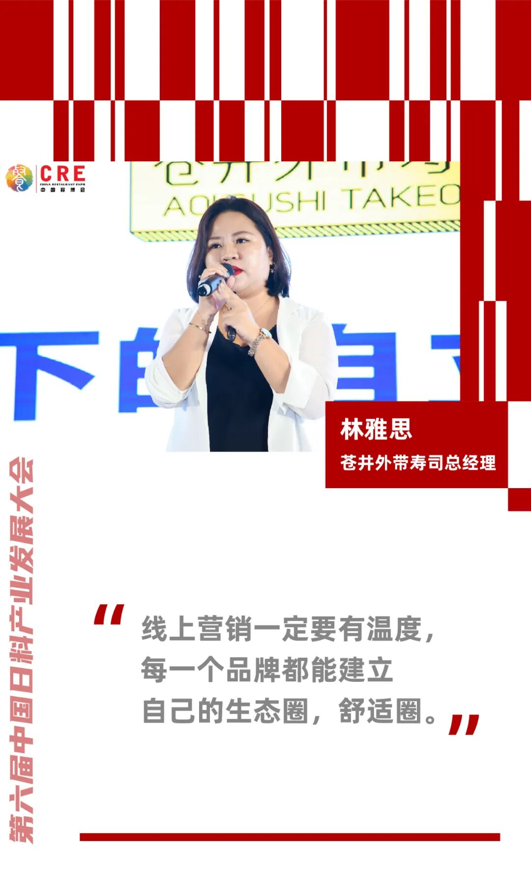 今年的疫情给整个餐饮行业都带来了巨大的冲击,而日料行业由于各类海鲜食材的限制使用让疫情带来的影响更加严重。谈论日料产业如何在疫情下的自立与自省时,苍井外带寿司总经理林雅思女士分享了常态化疫情下的营销方式。她从从私域流量的搭建,用户洞察,场景化营销三个层面分享了线上营销的创新方式。