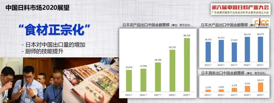 首先,中饭协日料委常务副理事长赵刚为大家回顾了2019年的日料市场大数据,通过对地区特色、口味差异、消费者受欢迎品类指数等关键数据进行具体分析发现,在中国的日料店保持每两年翻倍的增长速度不断扩充整个中国的日料市场。