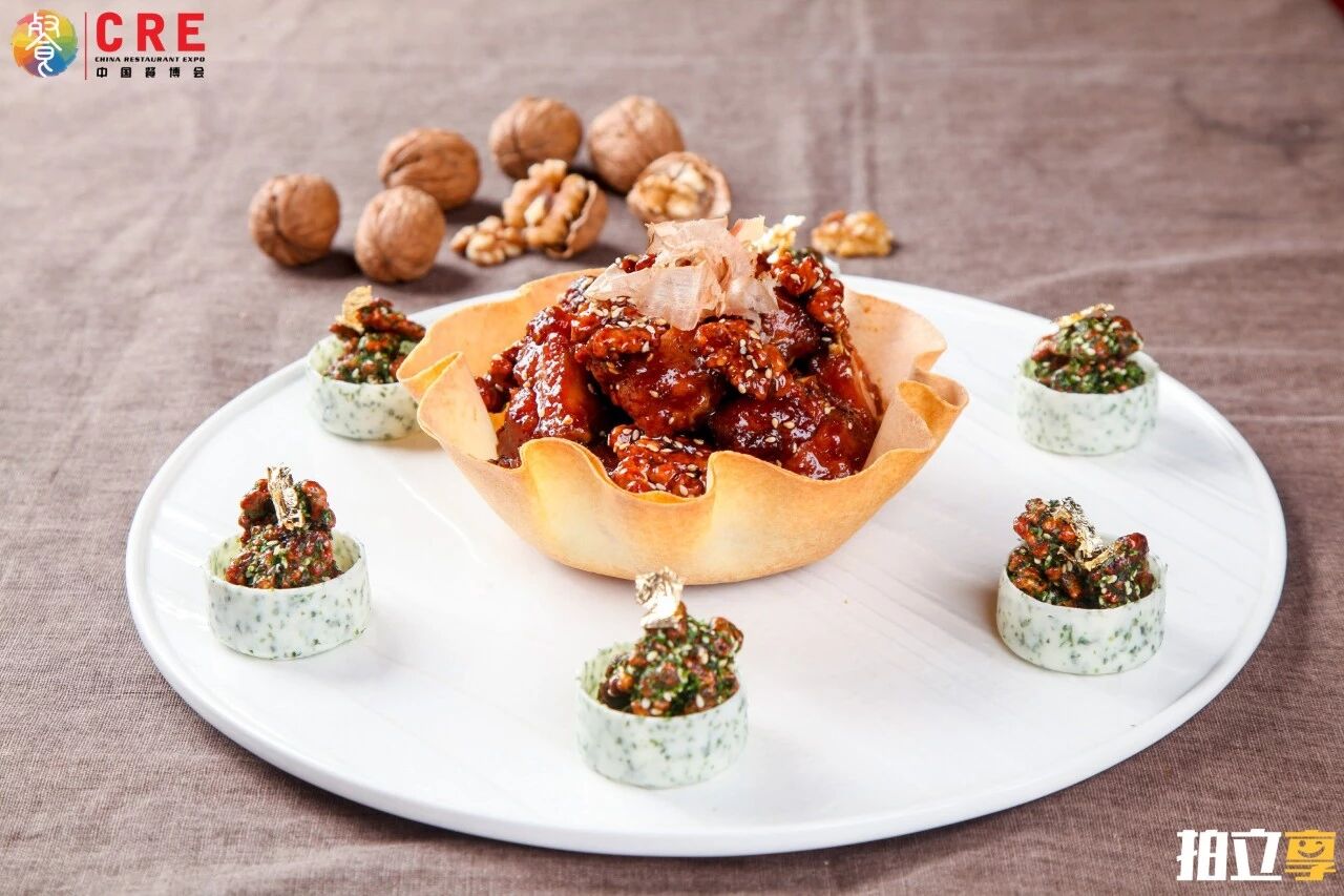 核桃一直是西餐甜品的主要材料,本次大赛活动主要是为了发挥厨师的想象力,对美国加州核桃在菜品中的应用加以创新,提升美国加州核桃的品牌形象,为餐饮市场提供健康美味的创意食谱。选手需使用比赛指定的美国加州大核桃烹制两道美食,一咸一甜,不能使用除了美国加州核桃以为的坚果,且用量必须为该美食配方的20%或以上。